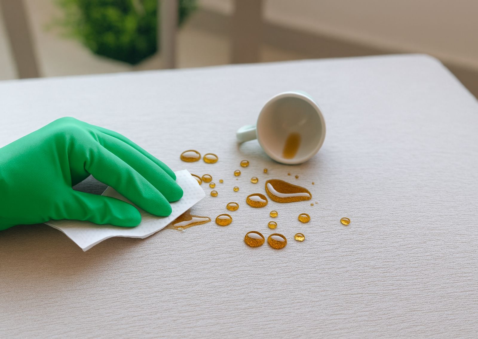 Ela impede a absorção — facilitando que você limpe antes de manchar.